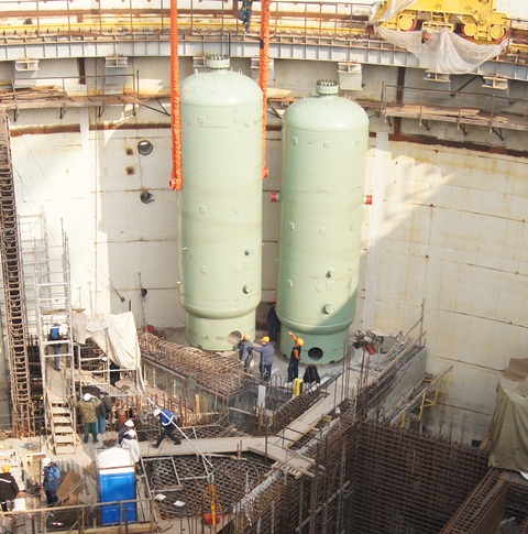 ОАО «Энергоспецмонтаж», силами филиала МСУ-4 приступил к монтажу ёмкостей системы аварийного охлаждения активной зоны (САОЗ) первого блока Нововоронежской АЭС-2. В реакторном здании первого энергоблока уже смонтированы две гидроёмкости САОЗ: объем каждой – 60 кубометров, вес – около 80 тонн. Они установлены в гермозоне - на отметке + 26.10 метров.